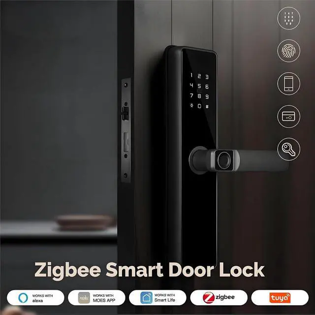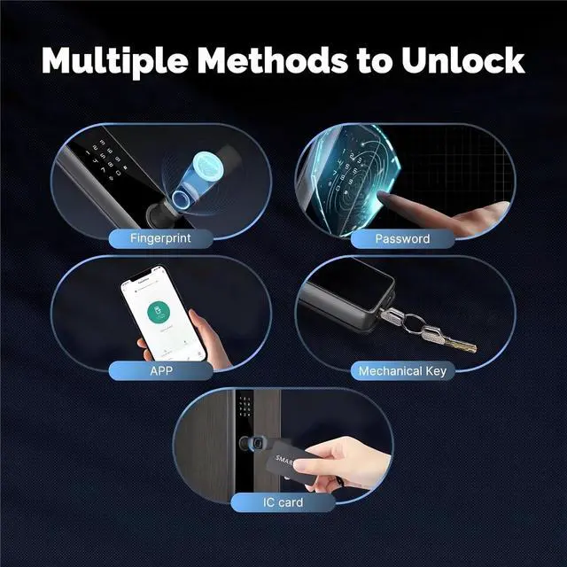 Smart Keyless Door Lock With Fingerprint Password Ic Card App And Mechanical Key For Multiple Unlock Options