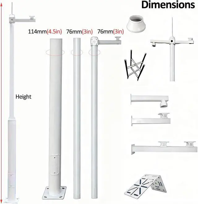 Sturdy Material: Our Outdoor Mount features a robust upright column crafted from thickened Galvanized Steel Tubing. The baked-on paint finish enhances durability and corrosion resistance. Designed with a secure Base that includes a Ground Cage and Fixing Screws, this Mount ensures stability, preventing wobbling during installation, even in windy conditions. Perfect for your Outdoor Setup!