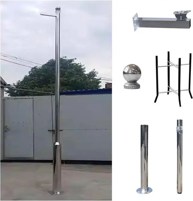 Constructed from 1.4 mm thick stainless steel pipe, this segmented column features cross arms in three sizes (A-10 cm, B-28 cm, C-30 cm) with diameters of 7.6 cm for upper/middle and 11.4 cm for bottom. It is UV-resistant, rust-proof, wind-proof, and withstands high and low temperatures for long-term outdoor use.