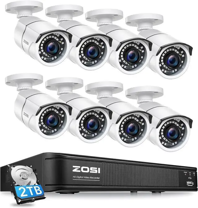 (2). [ 5MP 3K Lite System Overview ] __ Exclusive H.265+ 8CH 1080p DVR Recorder paired with 8 weatherproof 1080p bullet cameras with 100ft night vision and 90°view angle. BNC+DC CCTV cabling provides both video and power to your cameras,more stable and reliable than wireless security system.(2TB Security Grade Hard Drive Included)