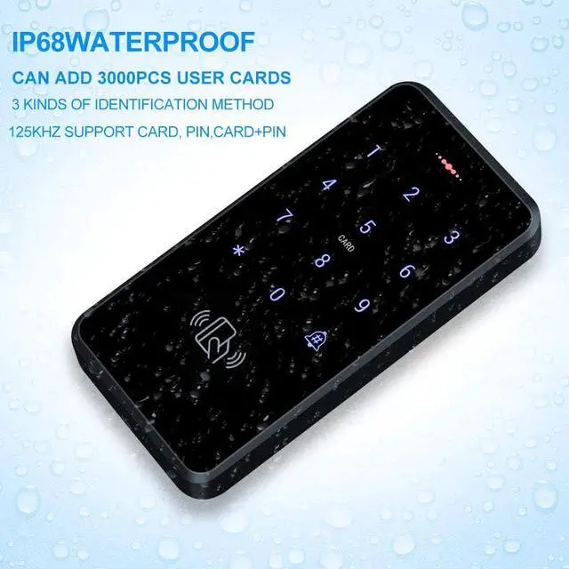 Fireproof ABS material: Molded from a one-piece mold with a hard plastic finish. Fireproof, impact-resistant, and abrasion-resistant. The touchscreen panel with blue backlight ensures clear readings even in dark places or at night. The access control keypad is IP68 weatherproof and waterproof. Suitable for indoor or outdoor installation.