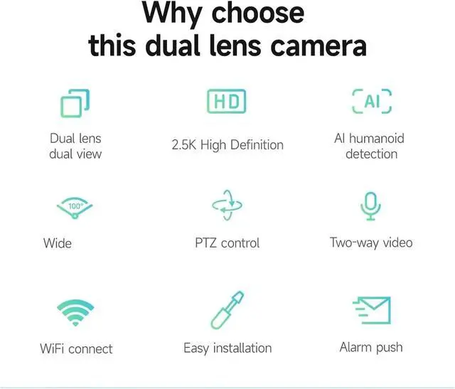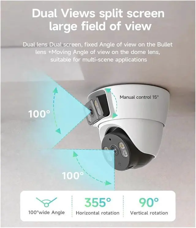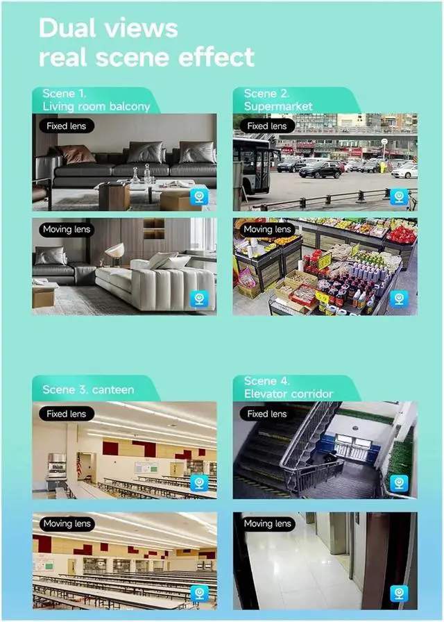 Dual lenses with 6 million ultra-clear resolution, every detail is vividly presented Equipped with two 3 million pixel independent lenses, the total resolution reaches 6 MP. The single lens covers a 3 MP high-definition image. Whether it's the expressions of people indoors, the textures of objects, or the movements of pets, everything can be clearly recorded without any omissions. The surveillance image is more detailed and realistic than direct phone shooting.