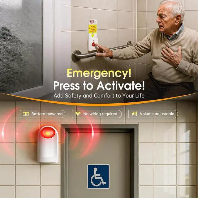 Adjustable Alarm Volume up to 130dB: The wireless call button system features a loud alarm with volume adjustable up to 130dB. Use the dial on the back of the emergency siren to easily set the sound level to match your environment and needs.