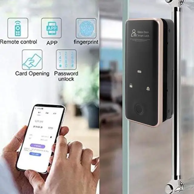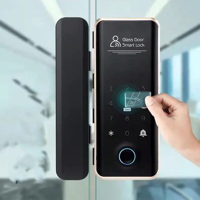 [Multiple Unlocking Methods] This smart glass door lock offers fingerprint, password, card, and remote unlocking options, along with real voice alarm and doorbell functions for added security and convenience.