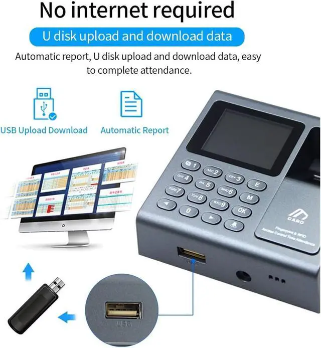 Clocking in Machine, Protable Biometric Fingerprint Scanner RFID Access Control System 1000 User USB Time Recorder Attendance Employee Machine