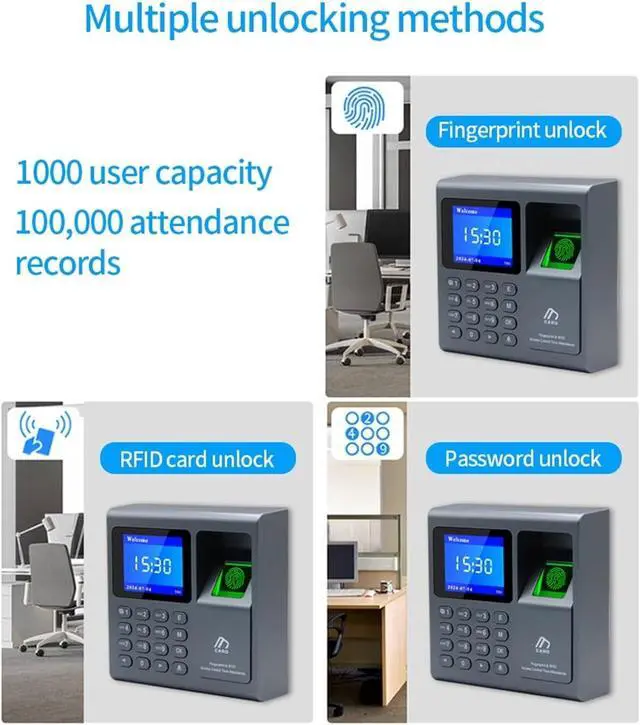 Adaptable for Various Environments: Functions effectively in a range of such as offices, manufacturing plants, educational facilities, and service-oriented businesses, simplifying time tracking and administrative tasks
