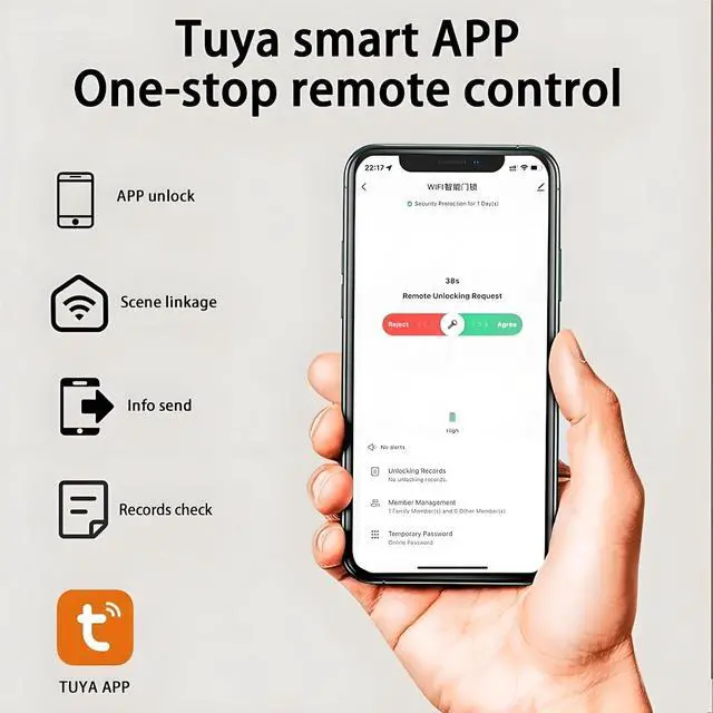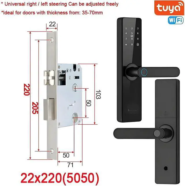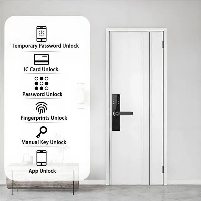 Main function: 5 ways to unlock fingerprint, password, IC card, mechanical key and mobile app (Wi-Fi), suitable for smart home control.