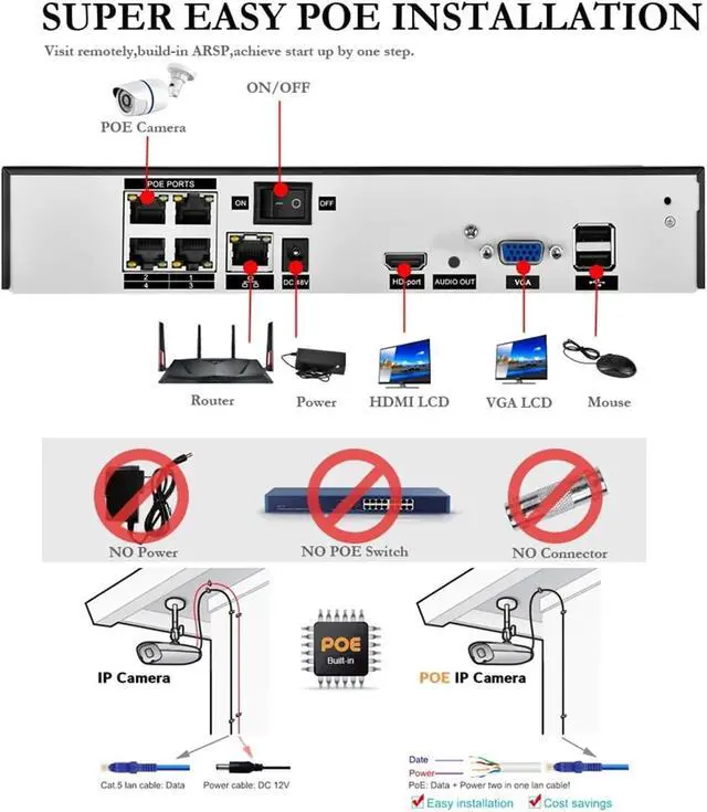 "POE NVR & Centralized Management"All-in-one power and control'The POE NVR provides stable power and data transmission through a single cable for all cameras, and manages recordings, playback, and alerts in one centralized hub!'