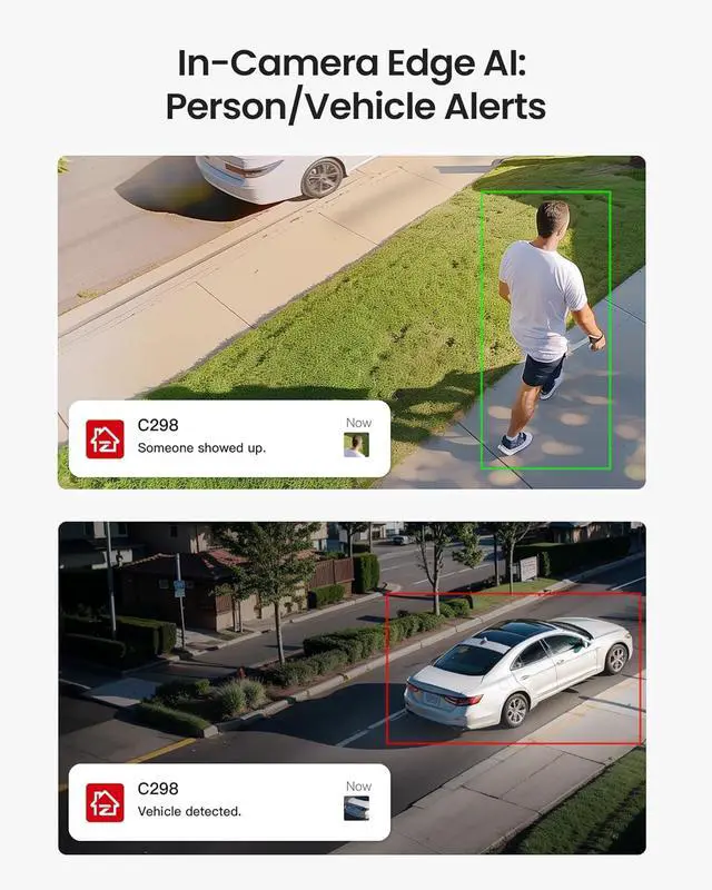 (2). [ AI Detection & Human Auto Tracking ]__ Advanced AI identifies people, pets, faces, vehicles, and general motion. Auto-tracking ensures moving subjects remain in view until they leave the scene, perfect for monitoring kids, pets, or activity around your property. Customizable detection zones let you focus on what matters most.