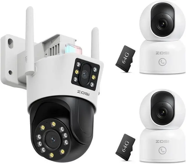 (5). [ Flexible Power, Storage & Remote Access ]__ Choose the setup that fits your needs: plug-in continuous power (4K indoor) or 2.4GHz WiFi IP66 weatherproof design for all-weather outdoor use (dual-lens). Store video locally via memory card (up to 256GB), on ZOSI NVR, or in the cloud. Manage, share, and playback footage anytime through the ZOSI Smart app.