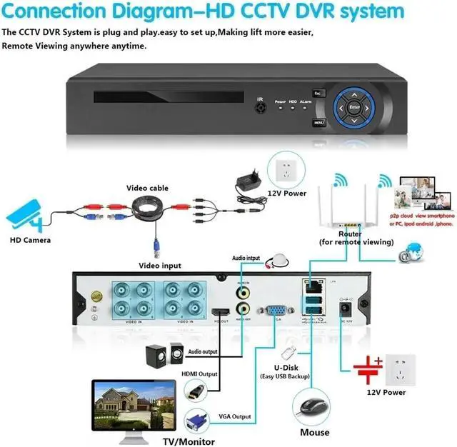 "8CH DVR & Centralized Management"All-in-one control'Connect up to 8 cameras and manage recordings, playback, and alerts through the centralized DVR for seamless surveillance!'