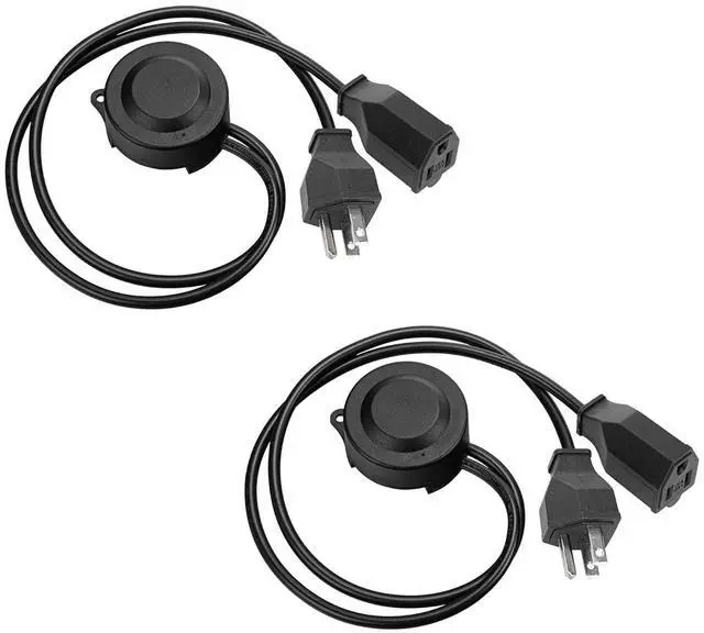 Black Motion Sensor Parts Extension 9.8Ft Cord Light Sensor Sensitivity Time Adjustable 3-Prong Plug in Socket Type Auto Detect Switch Lights Waterproof IP54 Timer Switch 2Pcs