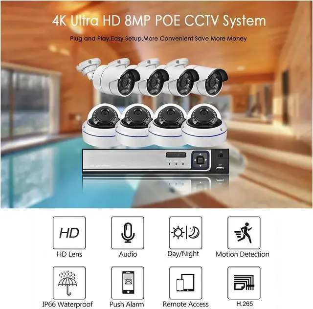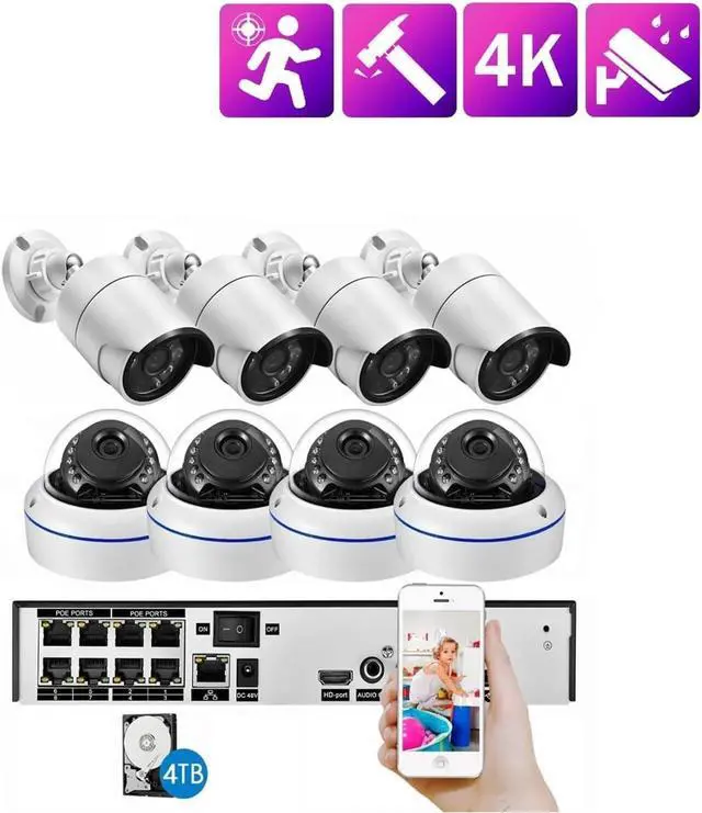 "H.265+ 4K POE NVR Surveillance Kit"Future-proof your security'Store months of 4K footage on a 2TB drive with H.265+ compression, saving 50% space!'