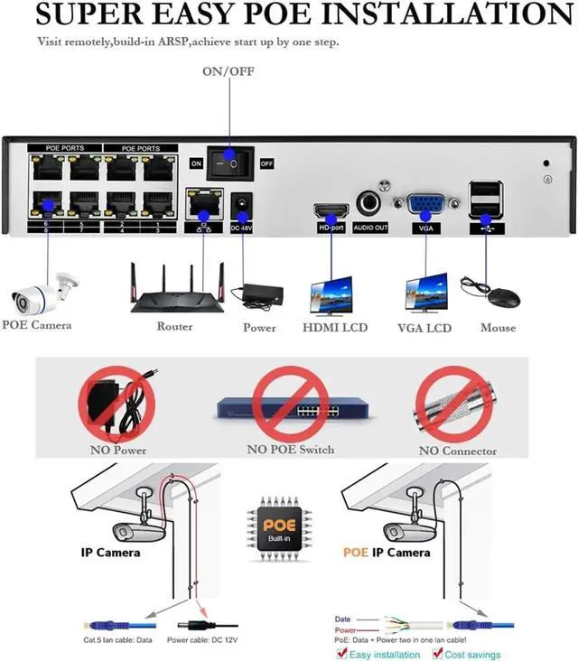 "Plug-and-Play POE Installation"Save hours of setup'Connect cameras with one cable for power and data, no networking skills needed!'