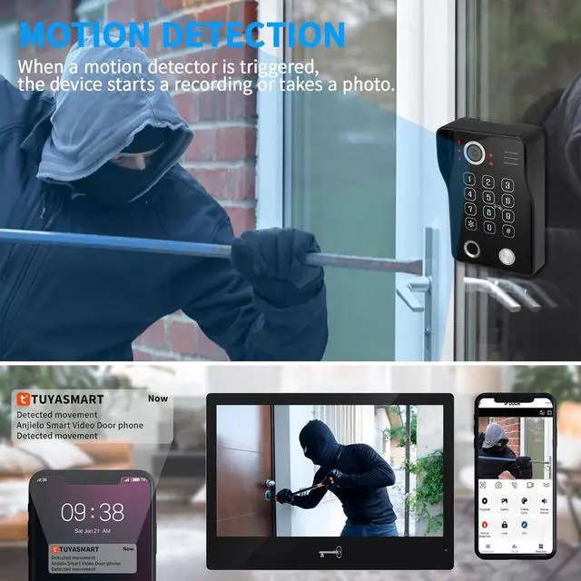 AUTO RECORDING AND PARIAL MOTION DETECTION:This wireless video intercom system is equipped with intelligent motion detection functionality, allowing you to customise monitoring areas to ensure home security while respecting neighbour privacy. When a visitor rings the doorbell or the system detects unusual activity, the doorbell camera automatically records video or captures images, which are stored on the included 32GB Micro SD card, providing round-the-clock protection for your home entrance. You can view these recordings anytime via your smartphone or monitoring device to stay informed about activity at your doorstep.