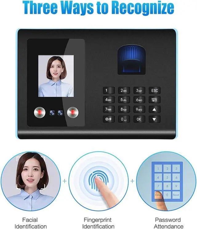 Three ways of identification - face, fingerprint, password attendance.