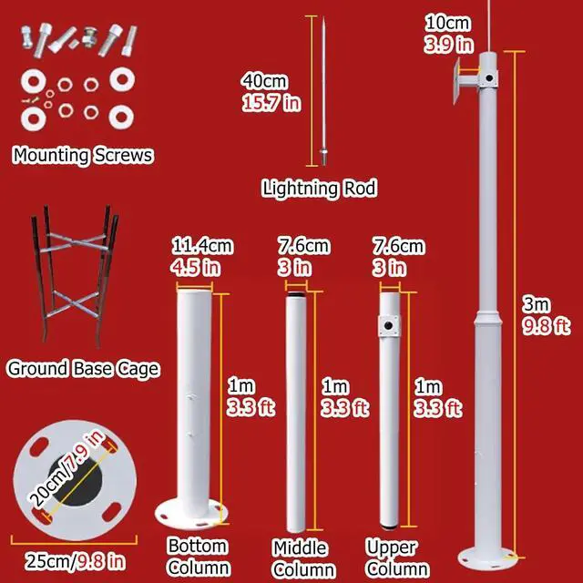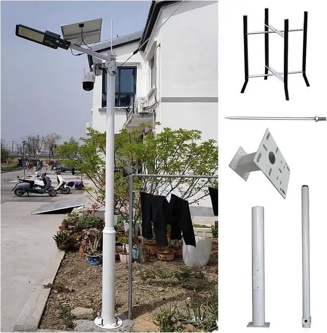 Easy Assemble: The segmented combined surveillance camera pole is assembled from 2-3 sections of poles, which is easy to transport and install, and is equipped with mounting screws and ground cages