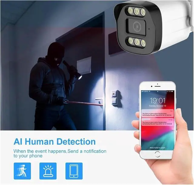 8MP Ultra-High Definition Picture Quality : Equipped with an 8-megapixel SONY sensor and H.265 video compression technology, it presents detailed and clear surveillance images. Whether during the day or at night, it can capture rich details.
