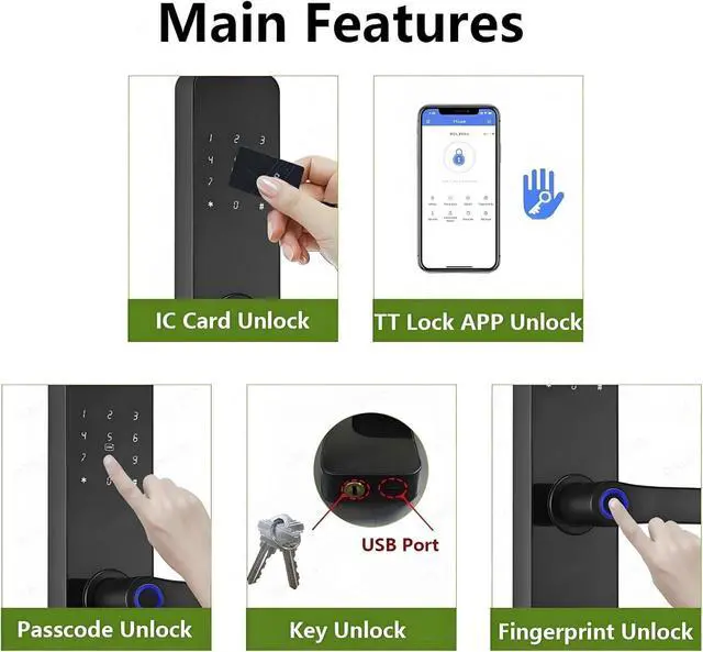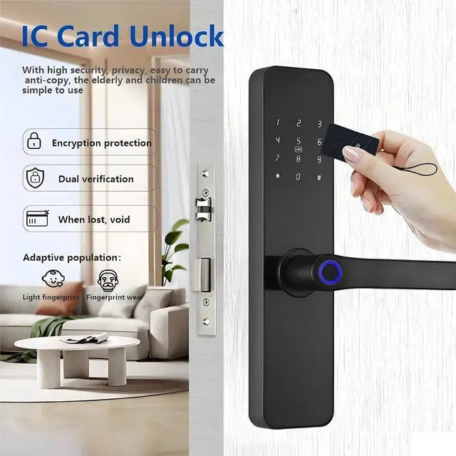 5 Unlock Methods: Operate via TT Lock APP, fingerprint, password, smart card, or mechanical key; supports virtual anti-peeping passwords.