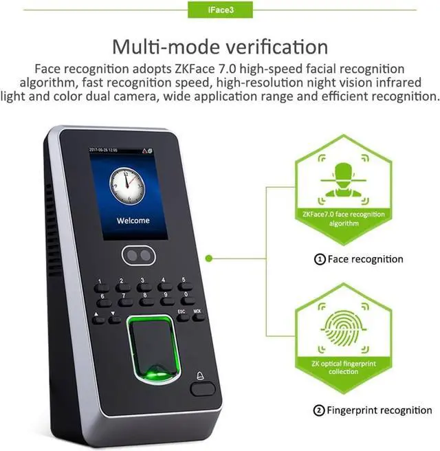 • 2.9-inch color display, graphical user interface, easy operation, effectively prevent duplicate face registration