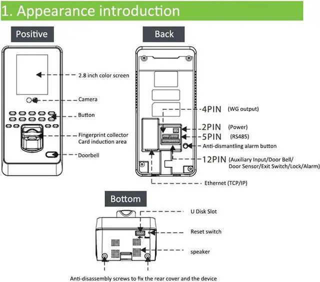 • 2.10-inch color display, graphical user interface, easy operation, effectively prevent duplicate face registration