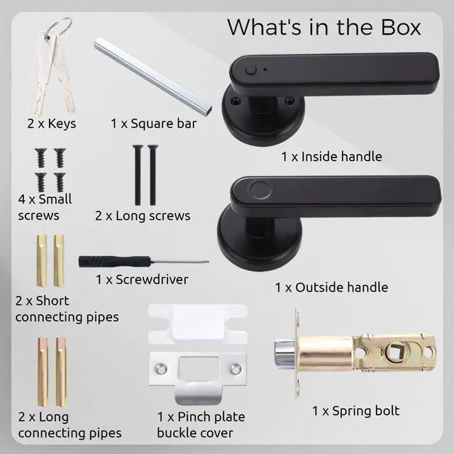 Multiple unlocking methods: unlock your door using fingerprint, passcode, or traditional keys; ensures you can always access your space, even if you misplace your keys