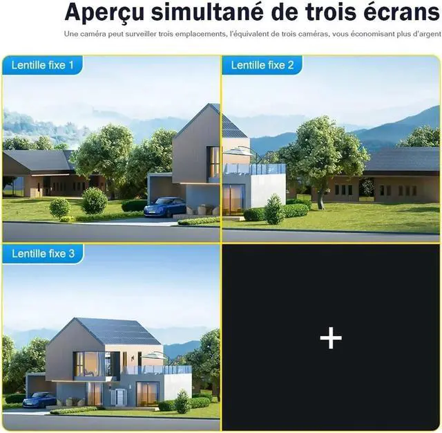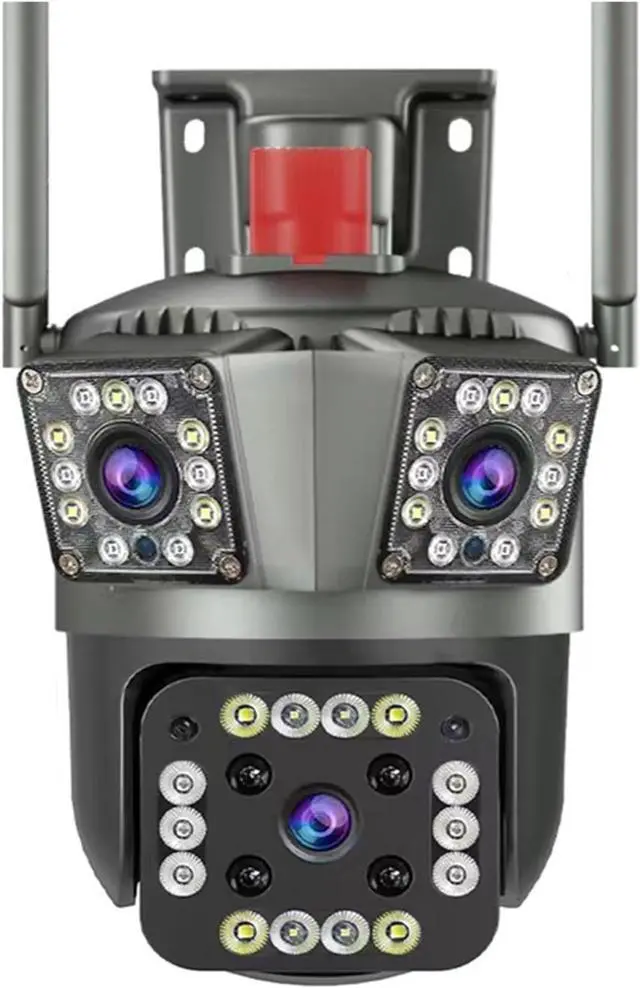 Three lenses, three screens +6K Ultra-Clear Monitoring Three lenses simultaneously output 12MP (6K) ultra-high-definition picture quality, allowing for a clear view of both near and far details. 360° coverage without blind spots, providing more comprehensive protection!