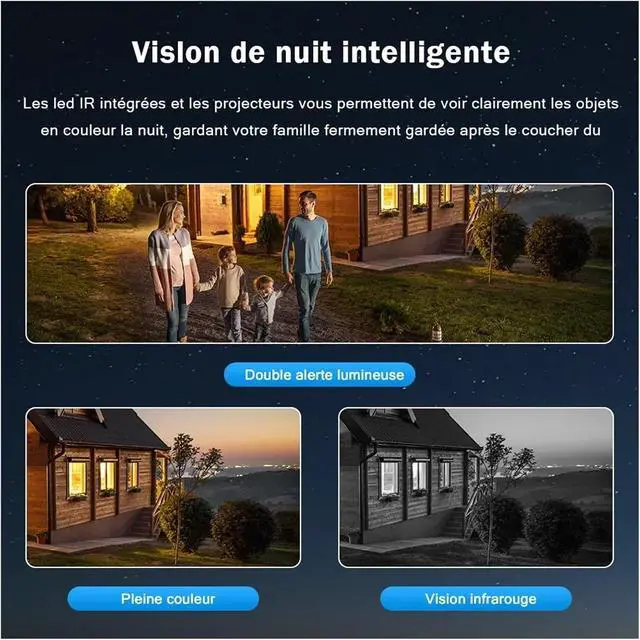 Full-color Night Vision + Three-mode Switching Freely switch between infrared, full-color, and smart night vision to present high-definition color images even at night, providing 24-hour uninterrupted protection for your family's security!