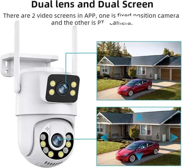8MP 4K Ultra-High-Definition Dual-Lens Dual-Screen : Two 4MP lenses combine to create an 8-megapixel 4K picture quality. The dual screens synchronously monitor different areas, providing 360° all-round coverage without blind spots. The detail clarity is four times that of 1080P, and details such as license plates and faces are clearly distinguishable.