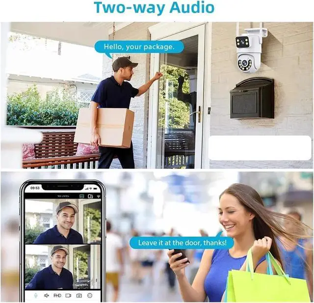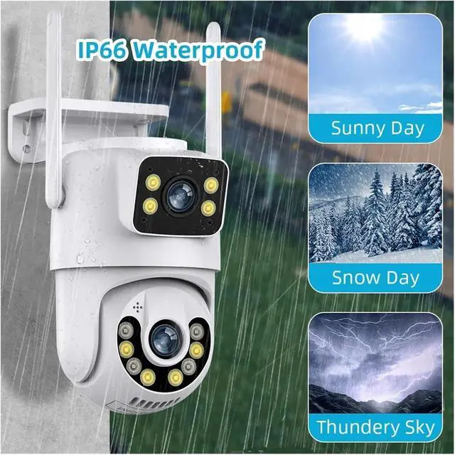 IP66 waterproof + two-way voice : The waterproof and dustproof housing can withstand heavy rain and sandstorms, and operates within a wide temperature range of -10 to 60. It is equipped with a high-volume speaker and microphone, providing clear real-time remote intercom. It can warn suspicious persons or interact with family members.