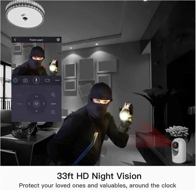 105° wide-angle + 33-foot night vision, panoramic coverage: The ultra-wide-angle lens combined with long-distance night vision ensures smooth live streaming without blind spots. One-click activation of privacy masking mode, balancing home security and privacy.