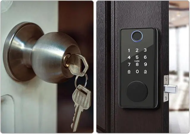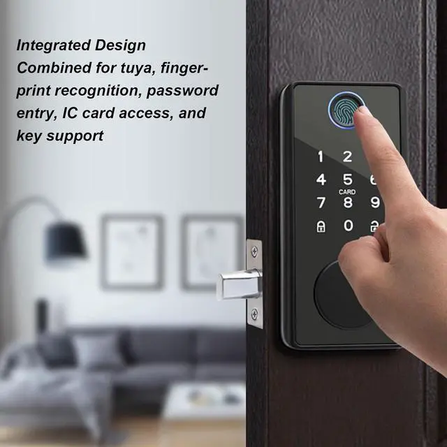 Integrated Design: This smart card door lock combines the stylish design and for tuya with the convenience of fingerprint recognition, password input, IC card access, as well as backup mechanical key support
