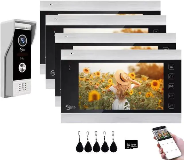 3-in-1 Unlocking and Automatic Recording: This device offers multiple unlocking methods. You can unlock it using an ID card, an app, or the screen. It is very convenient and flexible. When motion detection is triggered, the camera will automatically take a snapshot or record video, which is stored on the monitor's micro SD card (including a 32GB SD card). You can view the recorded content anytime via your smartphone.