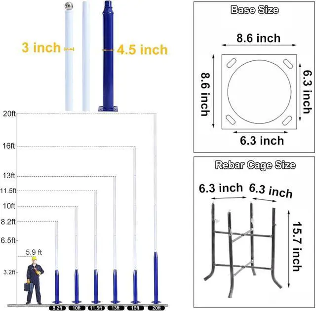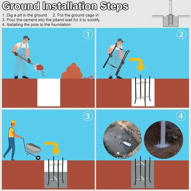Easy to Assemble and Install: Screws are included. Assemble each section pole with screw, connection the pole base to the rebar cage. Suitable for various outdoor applications, including streets, roadsides, patio, backyards, house exteriors, sports fields
