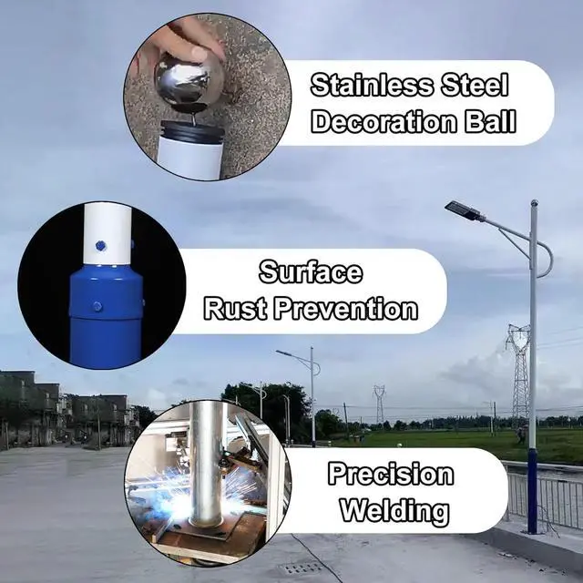 Versatile Use: Can be used to install different street lights, solar street lights, garden lights, sunshade sails, surveillance cameras and other appliances, but the lamp post is mainly used to install street lights