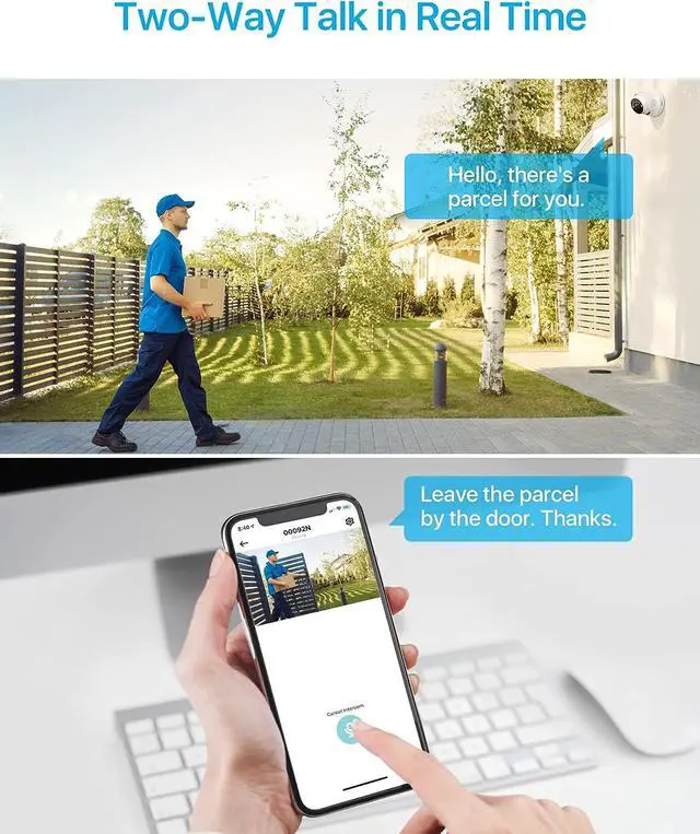 Two-Way AudioThis home security camera with a two-way audio function, not only can hear but also allows you to have real-time conversations like talking on a phone with your family members or warning intruders even if you are far away from home.