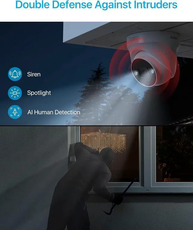 Person Vehicle Detection & Instant AlertsWith AI detection, ZOSI smart security camera can more accurately detect person and vehicle, and you can custom the alerts specific areas to reduce unnecessary notifications. This Surveillance Camera equips with a siren and spotlight as a deterrent, reacting to any potential danger