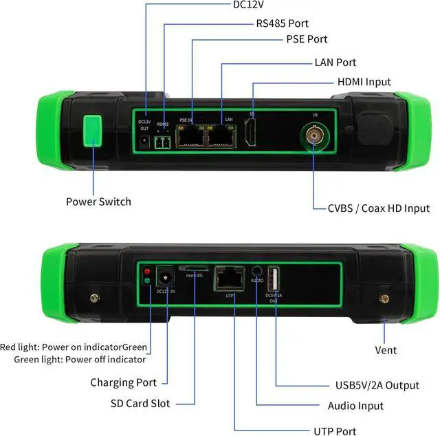Professional testing tool:RAINLEOTI IPC Tester is a powerful network tool with full functions, supporting IP detection, PING test, network port flashing, one-click video, POE, UTP cable testing. NOT Support RJ45 TDR cable!!! Security IP Camera Tester is also equipped with HDMI input. NO output interfaces.!! 4 power management methods, POE48V output, 12V/2A output, USB 5V/2A output and DC24V/1A input.