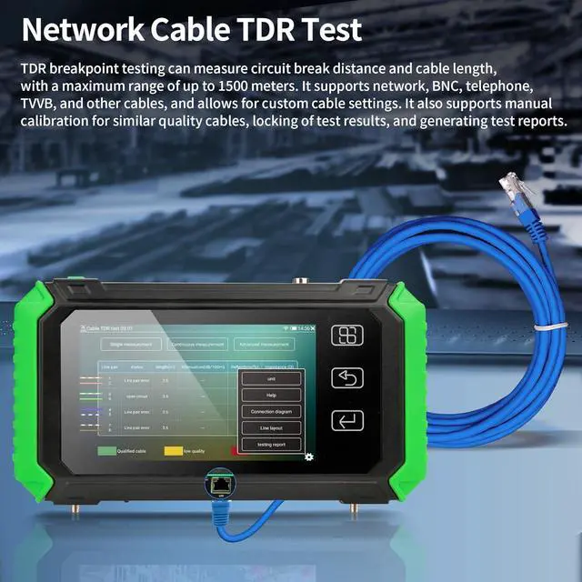 Network Camera Tester:RAINLEOTI 5.5-inch IP camera tester supports up to 6K 12MP IP POE camera testing. IP detection, fast recording, RTSP playback, IPC testing, automatic video viewing, and test report generation. Powerful network tools to help you detect and set various network parameters. Supports UTP network cable test, POE test, RJ45 TDR network cable test. RAINLEOTI's smaller size portable and high-precision CCTV camera tester ensures the efficiency and convenience of your work.