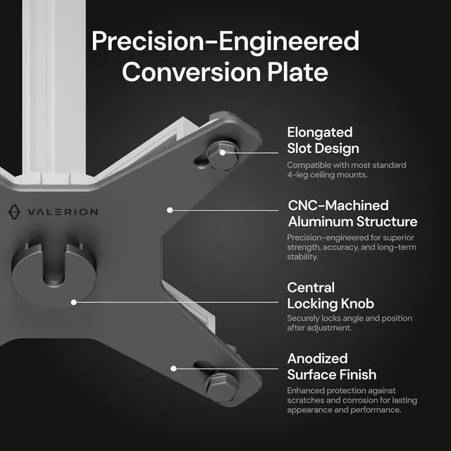 No-Damage Conversion for Existing 4-Leg Ceiling MountsSpecifically designed as a conversion solution for existing 4-leg ceiling mount brackets. Allows you to upgrade your current ceiling mount setup without removing the original bracket, drilling new holes, or damaging the ceiling structure. Ideal for users who want to improve functionality without reinstallation.