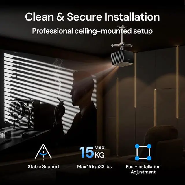 Clean, Professional Ceiling-Mounted AppearanceCompact conversion plate design minimizes visual clutter and keeps the ceiling installation neat and unobtrusive. Delivers a professional-grade mounting result suitable for home theaters, dedicated media rooms, and clean modern living spaces.