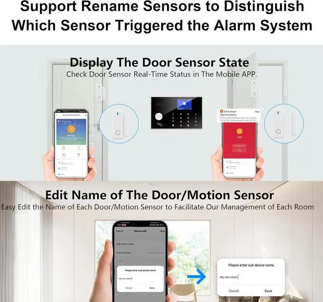 Extendable: Supports up to 100 sensors and 10 remote controls. Add door/window sensors, motion detectors, keyboards, water leak detectors, doorbells and more to quickly and easily extend your home protection based on its size and layout.