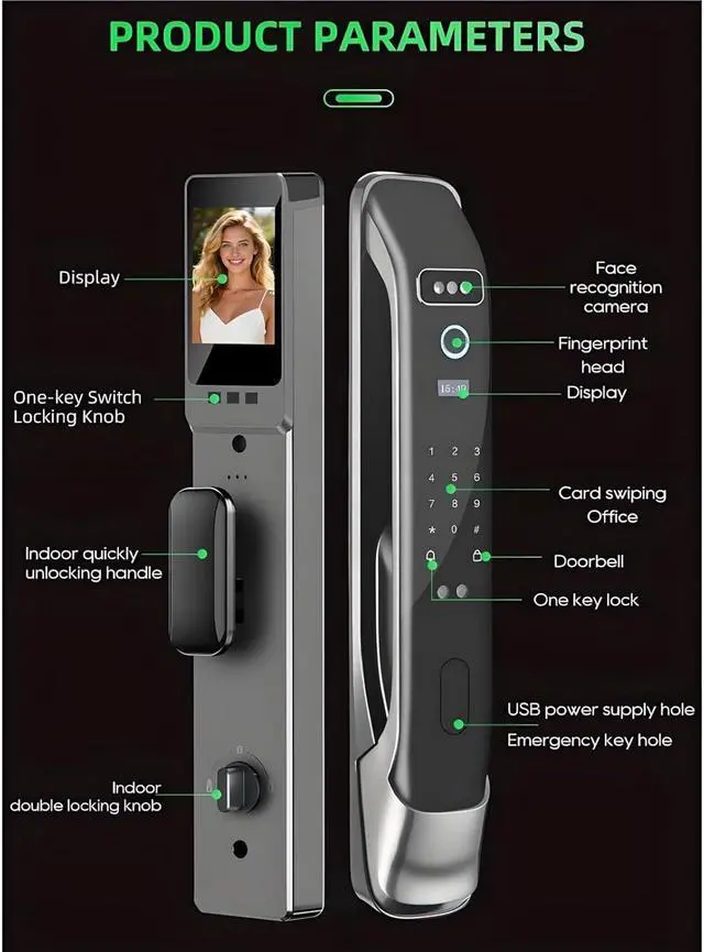 Multi Method UnlockingFace fingerprint password card mechanical key app and WiFi remote control for flexible access