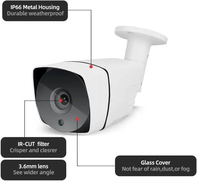 IP66 waterproof rating for outdoor use: the metal housing and body make this outdoor camera waterproof. It works perfectly both indoors and outdoors, in all harsh weather conditions.