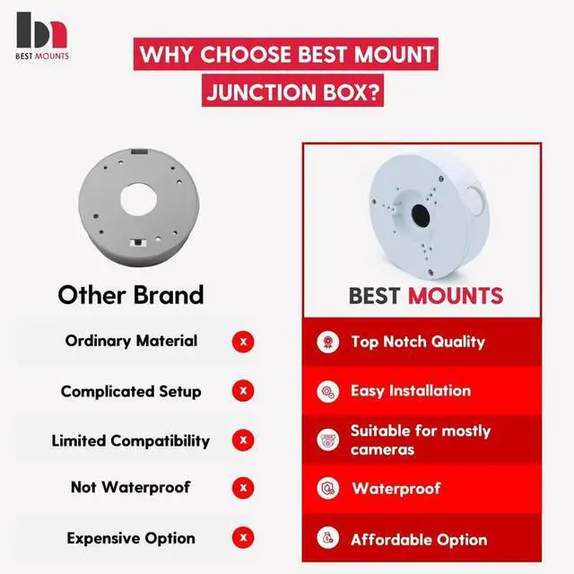 : Best mount CCTV junction box is designed for versatility; our junction box is compatible with a range of camera models. It fits seamlessly with various camera brackets, including bullet cameras and solar panel mounts, offering a universal solution for different setups