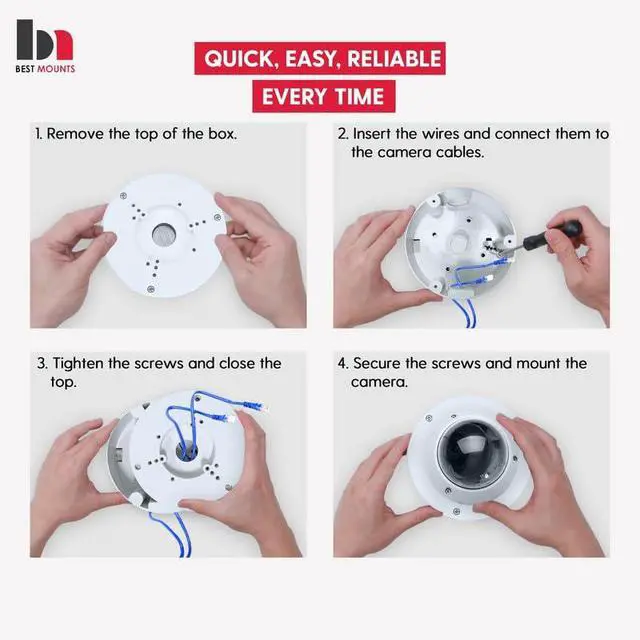 : The security camera junction box comes with solid screws and offers easy mounting, saving you from worrying about damaging your bracket. Its sturdy, reusable design makes installation simple, allowing you to mount it according to your specific needs