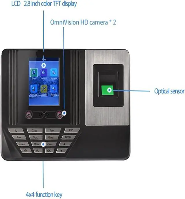 Face, fingerprint, password recognition no software required Download attendance records directly from U disk Various optional functions, easy to operate High recognition rate, the speed is less than one second