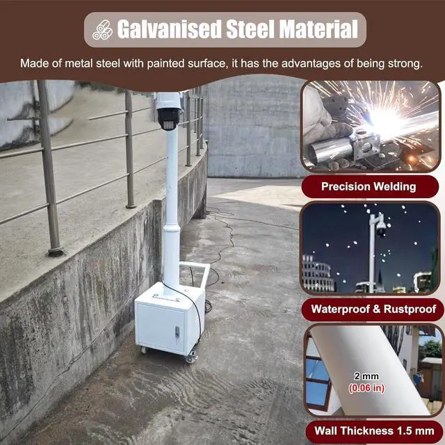 Steel Camera Pole : Surveillance poles are made of galvanized steel, wall thickness 0.06 in. Assembly design, strong load-bearing, prevents vibration-induced image blurring. Extreme outdoor weather will not affect the use, no rust