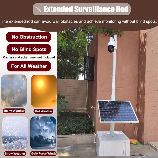 Universal Holder : Compatible with various cameras: CCTV cameras, remote monitoring, security, pet cameras, solar panels etc.It can be used in backyards, parking lots, traffic monitoring, schools, gas stations, outdoor corners, etc