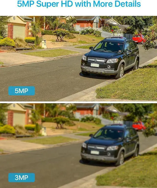 (2). [ 5MP 3K PoE Camera Overview ] __ Equipped with 36pcs IR LEDs and a 1/3'' CMOS sensor, this PoE surveillance camera captures 3K resolution footage with exceptional clarity. With a night vision range of up to 120ft, this camera can capture clear black and white images at night and vibrant color images during the day. The 3.6mm lens provides a wide coverage of approximately 95°view, depending on the environment it is being used in.